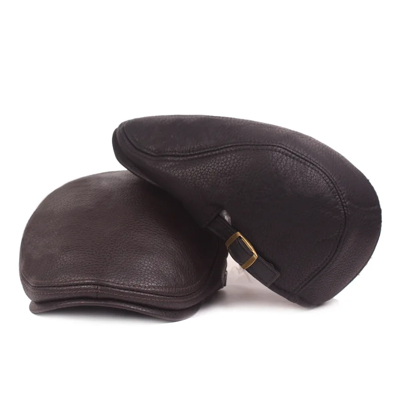 Product Name: XdanqinX męskie ze skóry pu berety zima proste moda imitacja skóry język Cap w średnim wieku w podeszłym wieku ciepłe czapka zimowa czapki tirówki