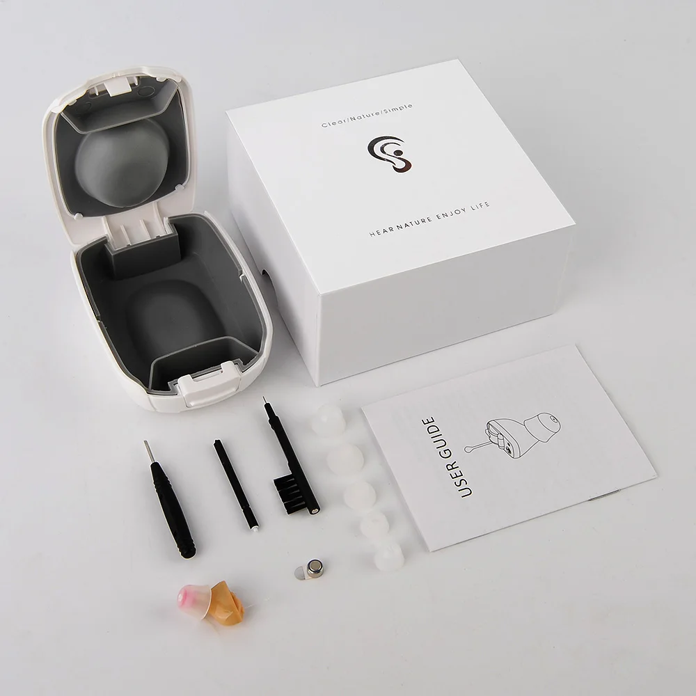 Product Name: Gorąca sprzedaż CIC niewidoczny aparat słuchowy dla głuchota Mini aparaty słuchowe dla osób starszych w uchu cyfrowy wzmacniacz dźwięku słuchawki skóra