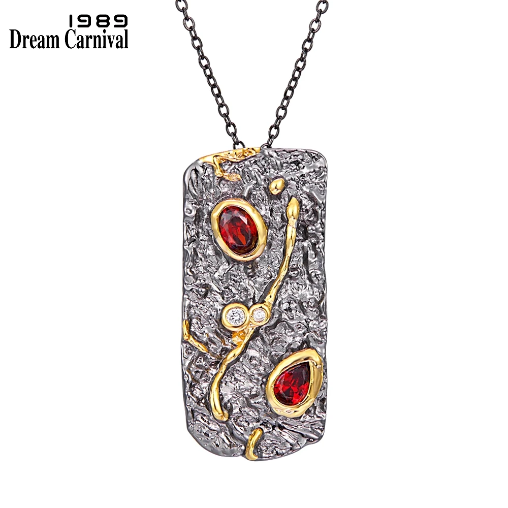 Special Offer DreamCarnival1989 jesień zima nowe kolekcje z epoki kamienia długi naszyjnik dla kobiet czarne złoto Vintage unikatowy czerwony CZ WP6670 Discount 23% Today!