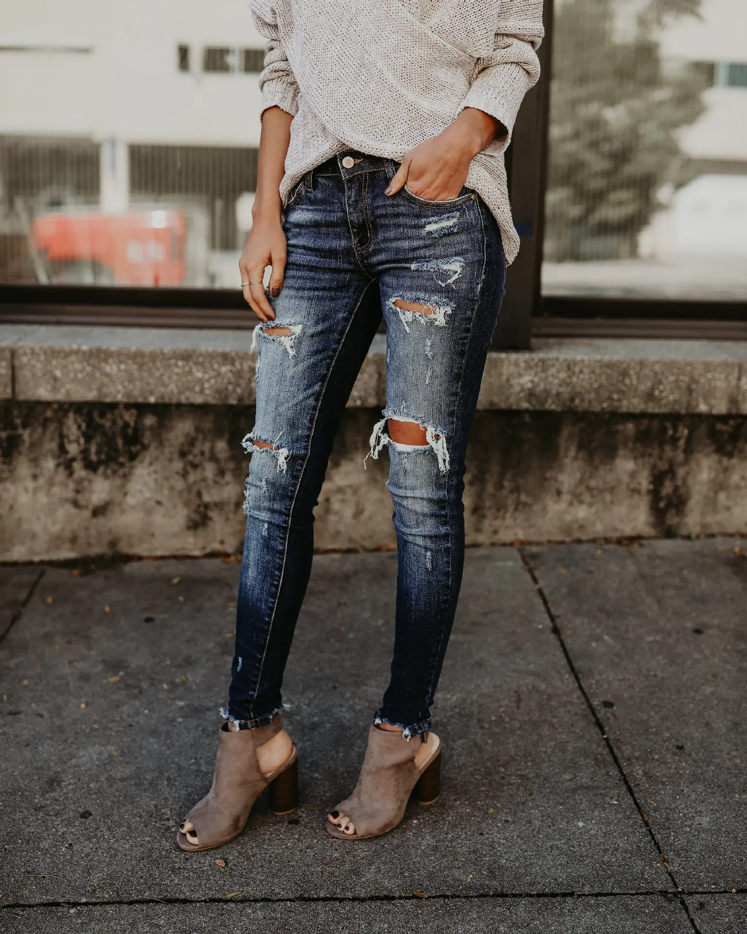 Product Name: 2020 wiosna moda bielone porwane jeansy damskie bawełniane Denim Slim elastyczność spodnie obcisłe wąsy efekt dżinsy vintage Femme