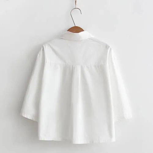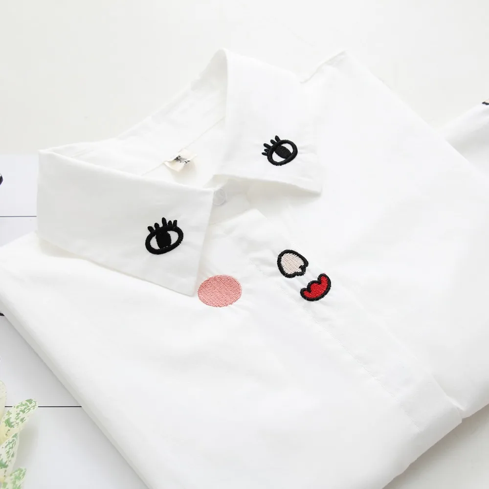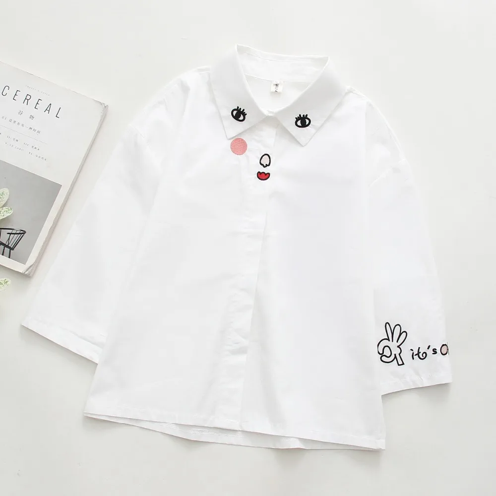 Special Offer 2019 nowy biały biuro koszula damska koszula na guziki rękaw 3 4 bawełna twarz haftowana bluzka FemininaT8D422M Discount 40% Today!