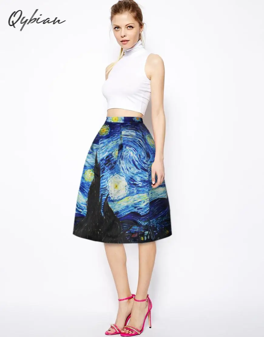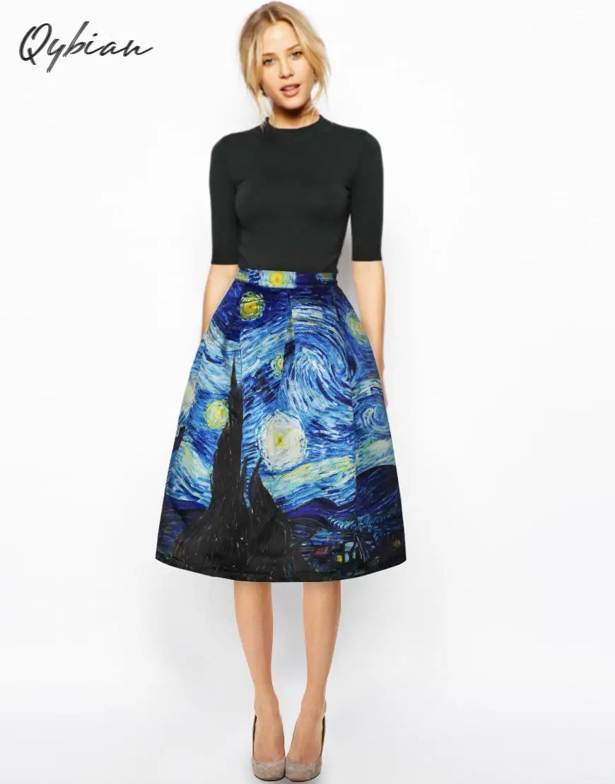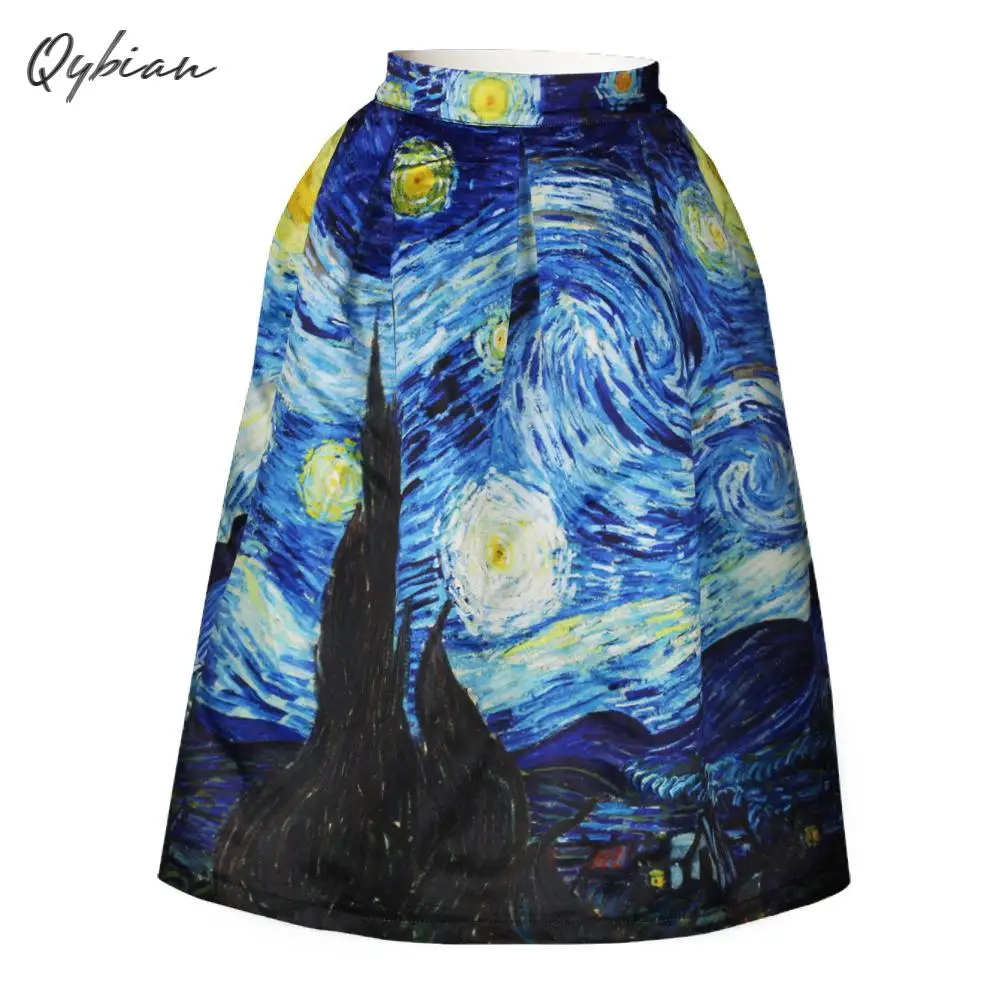 Special Offer Qybian nowy Faldas Vintage 2020 Van Gogh drukuj spódnice dla pań wysokiej talii spódnice damskie świąteczna spódnica Discount 0% Today!