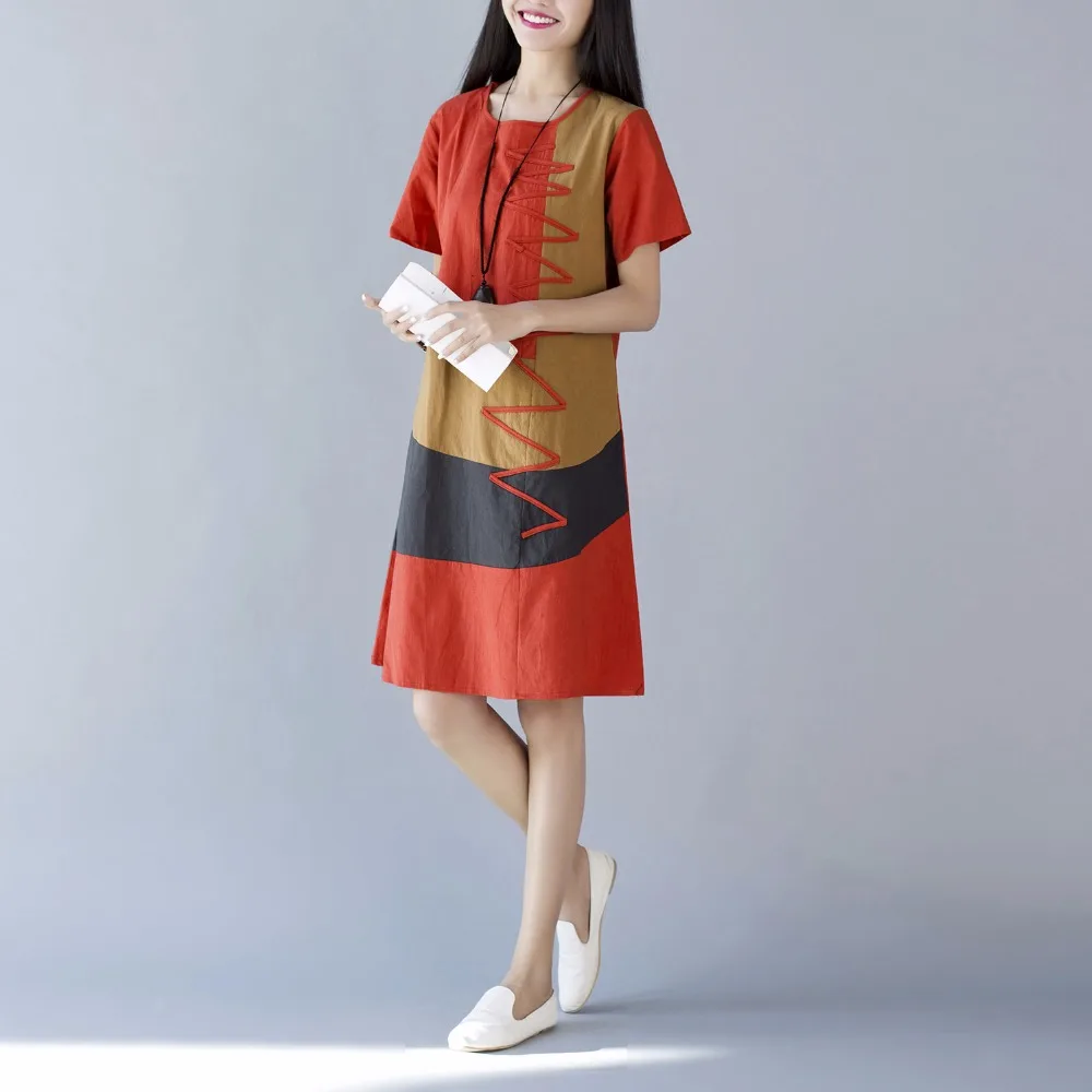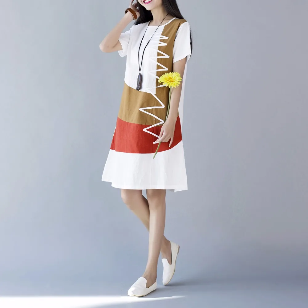 Product Name: 2020 nowa letnia bawełniana i lniana sukienka z krótkim rękawem o neck line kobiety sukienka Casual Plus rozmiar luźne sukienki Maxi Party
