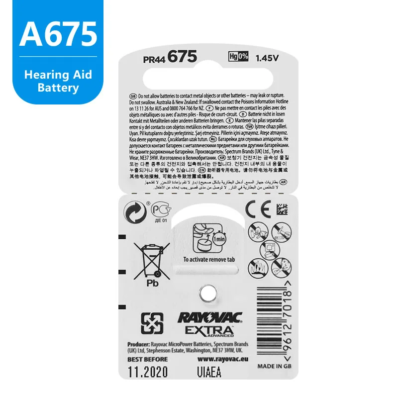 Product Name: 60 sztuk Rayovac dodatkowe baterie do aparatów słuchowych Zinc Air 675A 675 A675 PR44 do aparatów słuchowych