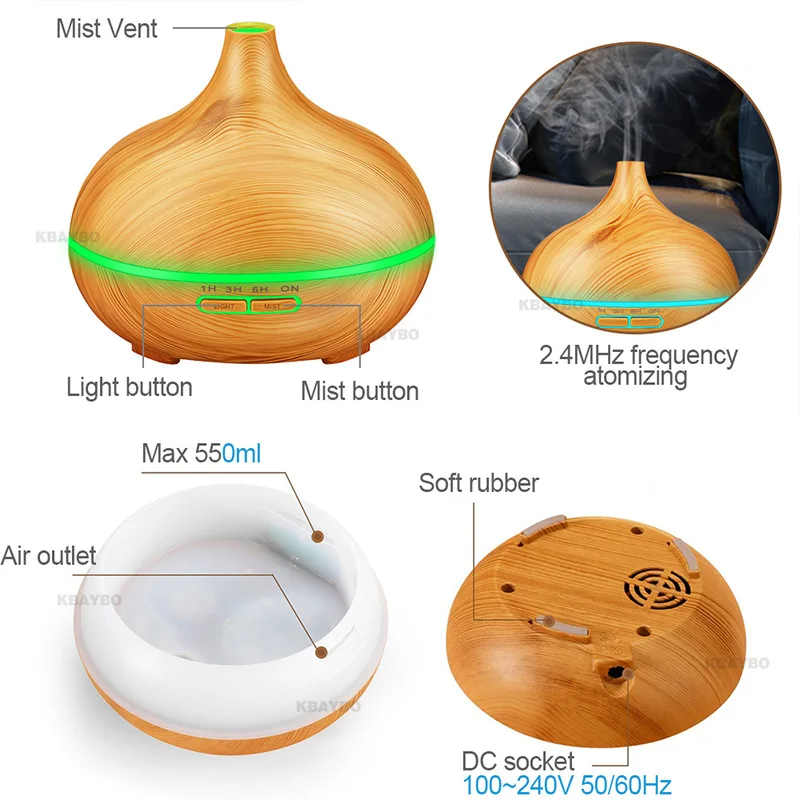 Product Name: KBAYBO 400ml elektryczny Aroma dyfuzor olejków eterycznych nawilżacz powietrza olejki eteryczne LED światła oczyszczacz powietrza dla home office