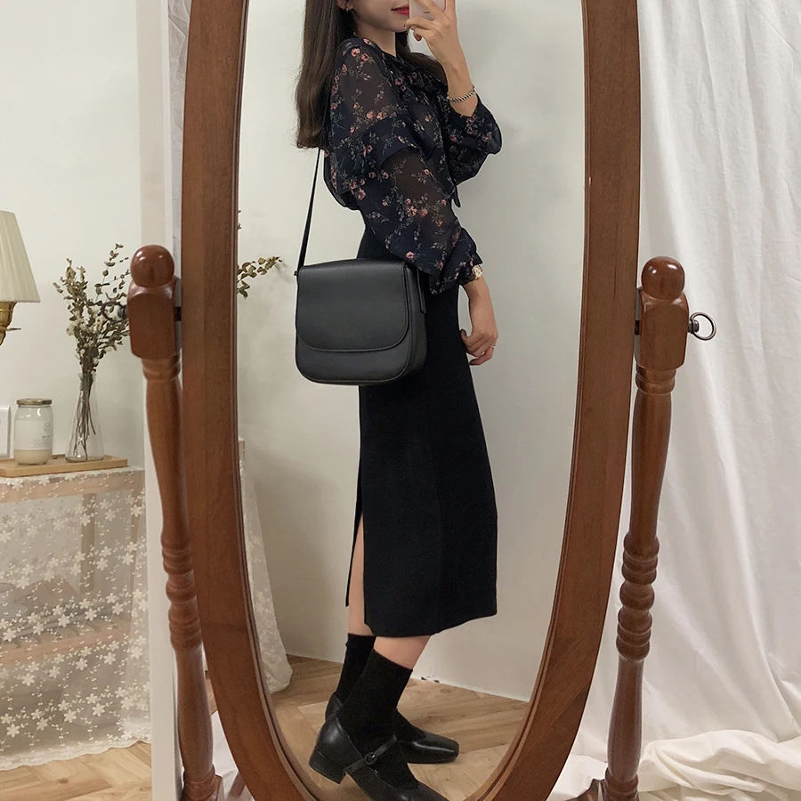 Product Name: Solidna czarna brązowa spódnica do połowy łydki kobiet w stylu vintage, wiosenna letnia prosta spódnica długie biuro Lady wysokiej talii spódniczki dziewczęce Femininas