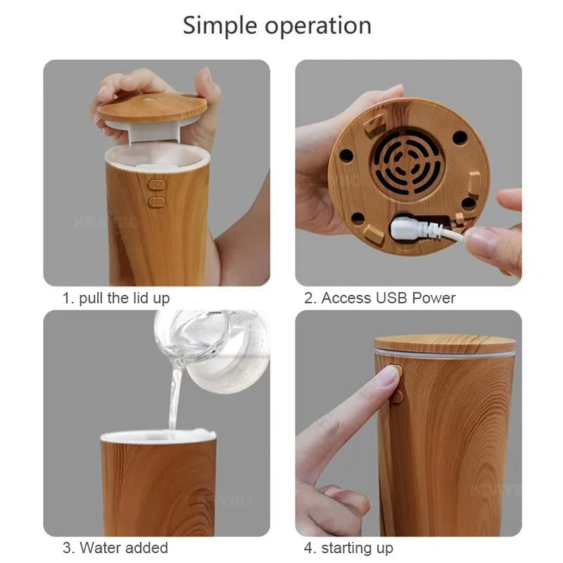 Product Name: KBAYBO 100ML samochodowy nawilżacz powietrza elektryczny ultradźwiękowy USB oczyszczacz drewna ziarna olejku aromaterapeutycznego dyfuzor home office