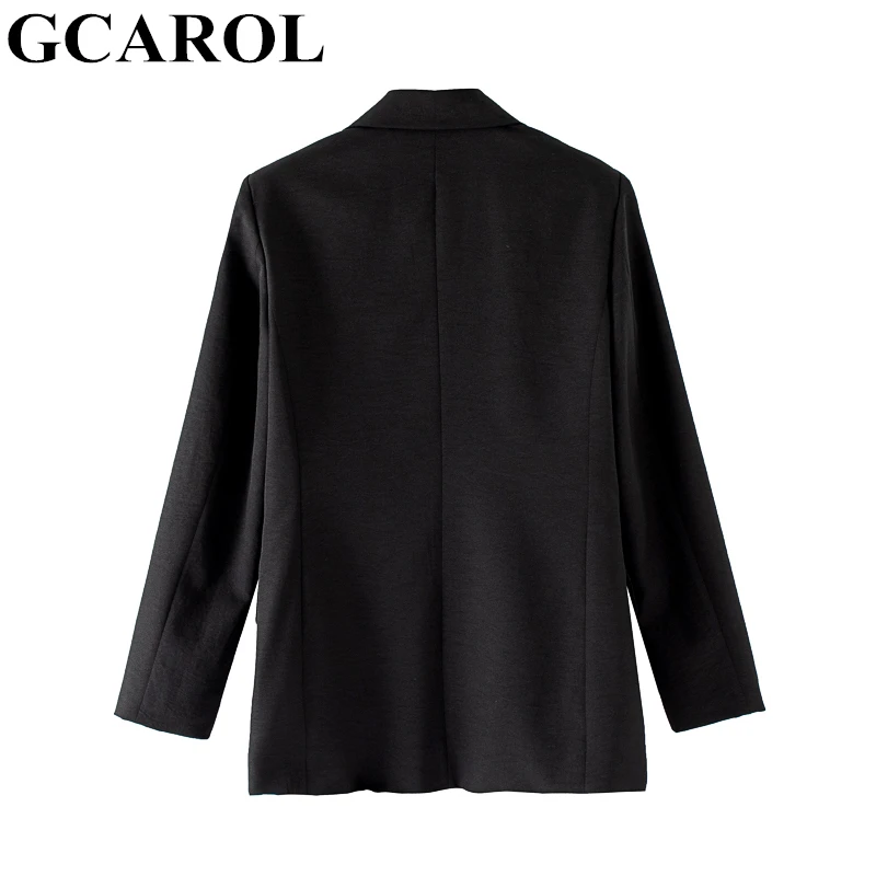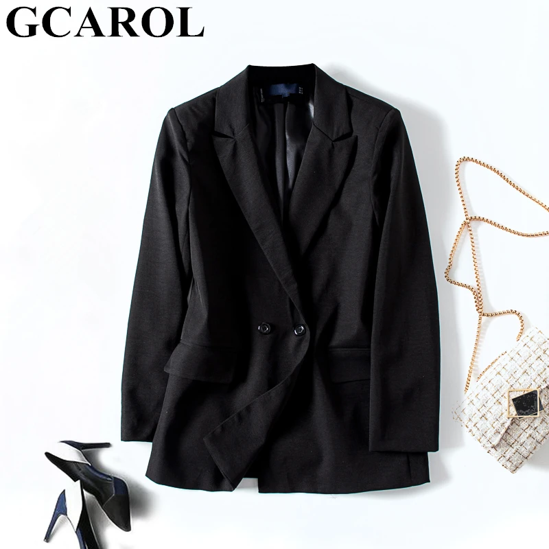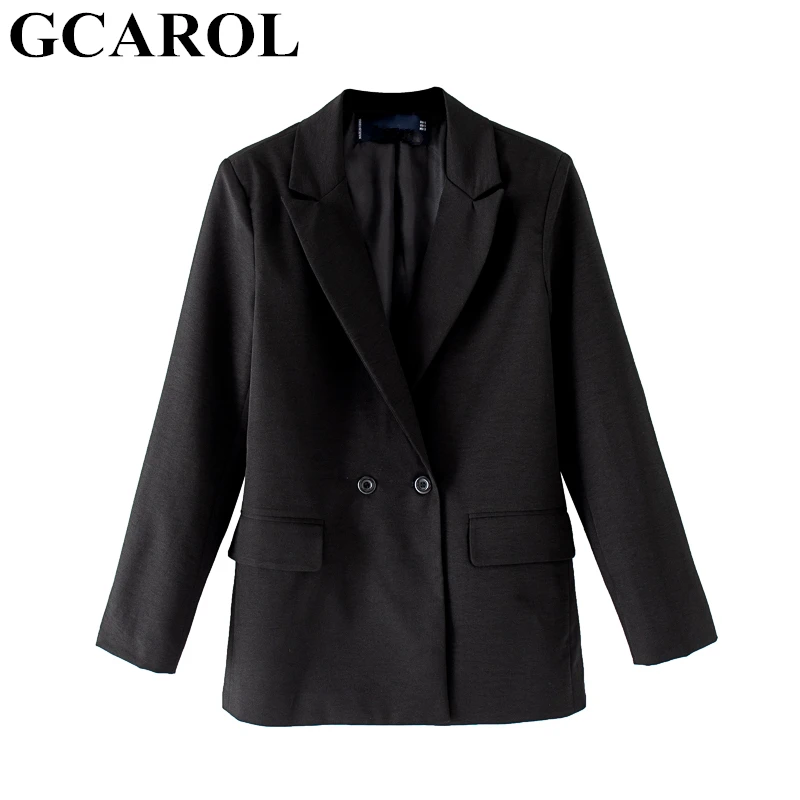 Product Name: GCAROL nowych kobiet podwójne piersi Blazer 30% Cotto dopasowany kołnierz 2 kieszenie OL biuro czarny garnitur jesień zima średniej długości kurtka