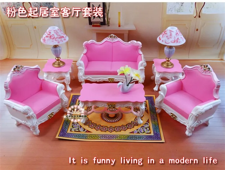 Special Offer Meble salon (sofa + stolik + lampa) akcesoria dla barbie doll 1 6 zabawki prezent urodzinowy dla niej plastikowy zestaw do gry Discount 38% Today!