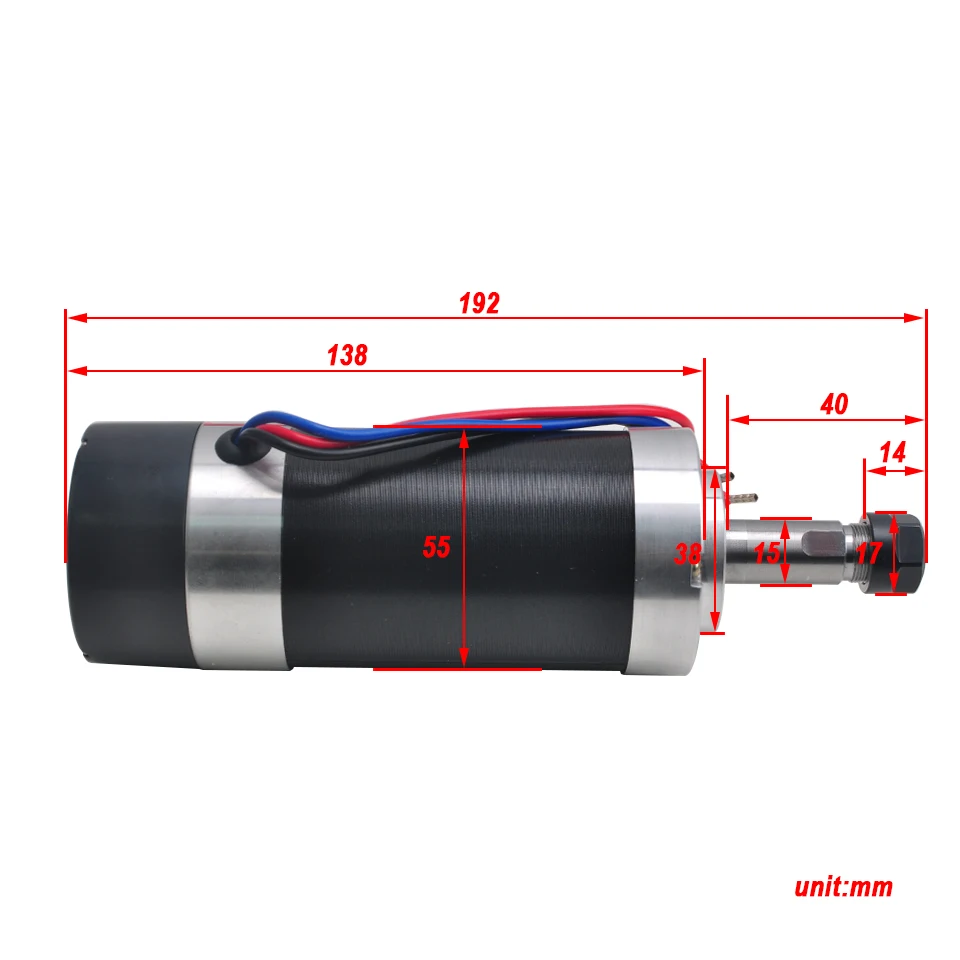 Product Name: 500W bezszczotkowy zestaw do silnika wrzeciono chłodzone powietrzem ER11 ER16 55MM uchwyt DC 48V maszyna frezarka do frezowanie cnc obrabiarka