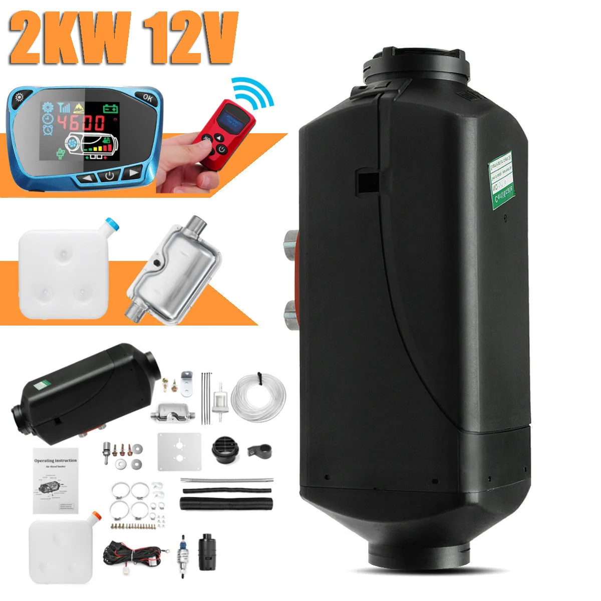 Product Name: 12V 2KW samochód diesel powietrzna nagrzewnica postojowa podgrzewacz samochodowy pilot z wyświetlaczem lcd przełącznik monitora + tłumik do ciężarówek autobus przyczepa grzejnik