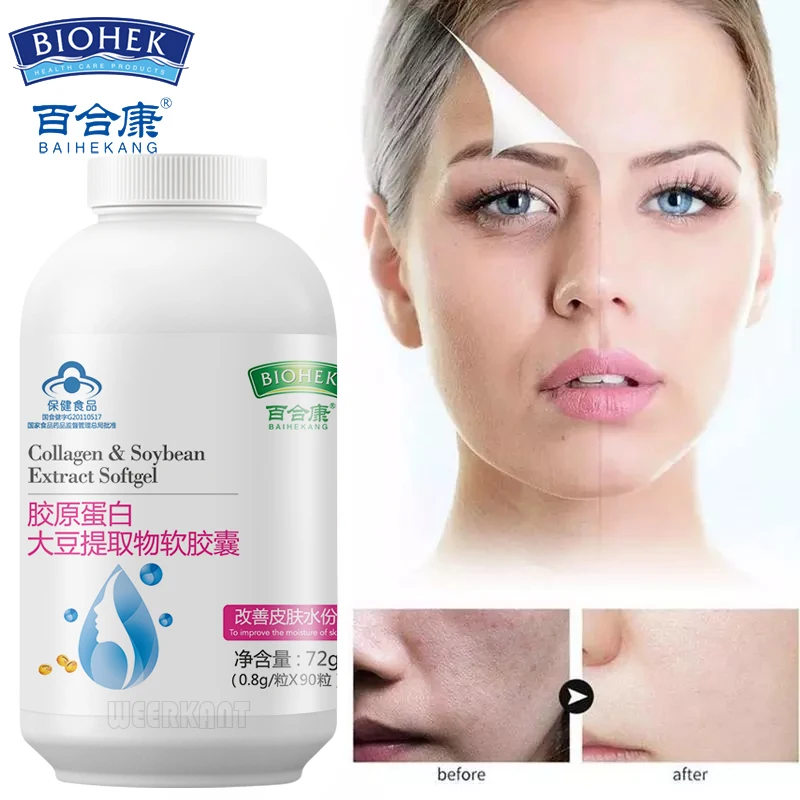 Product Name: 90 sztuk ryby kolagen pić piękno kapsułki pielęgnacja twarzy snu łatki rozwiać zmarszczki Anti aging wybielanie nawilżający