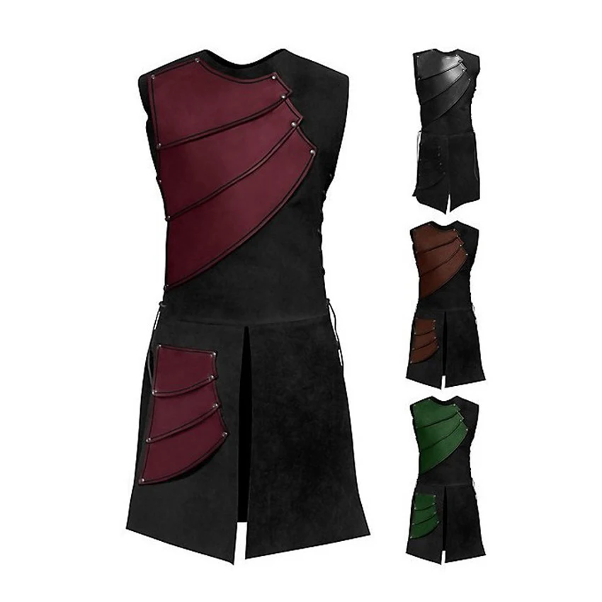 Product Name: Halloween dorosły człowiek bez rękawów średniowieczne kostiumy Cosplay bandaż rycerz Ranger średniowiecze Patchwork mieszanie kurtka odzież