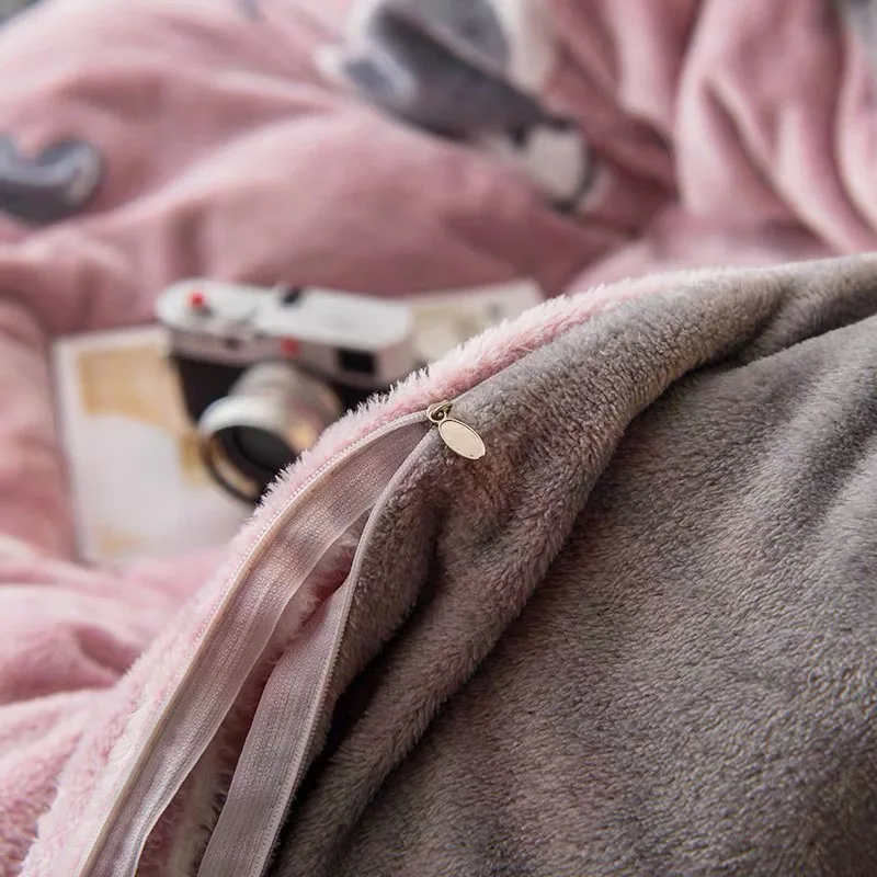 Product Name: JUSTCHIC Winter dwustronny zagęszczony śnieg polar kapa na kołdrę Cute Cartoon dziecko kołdra pokrywa koc na sofę AB wersja