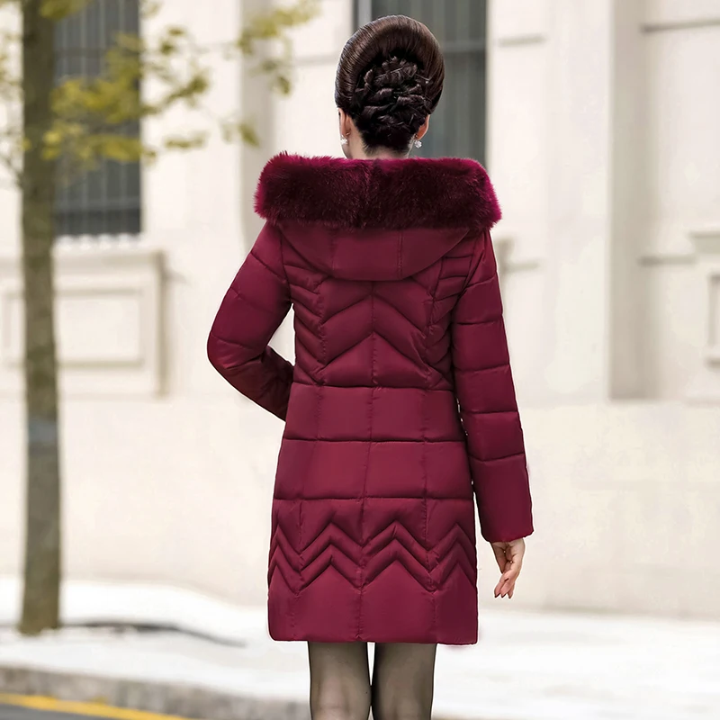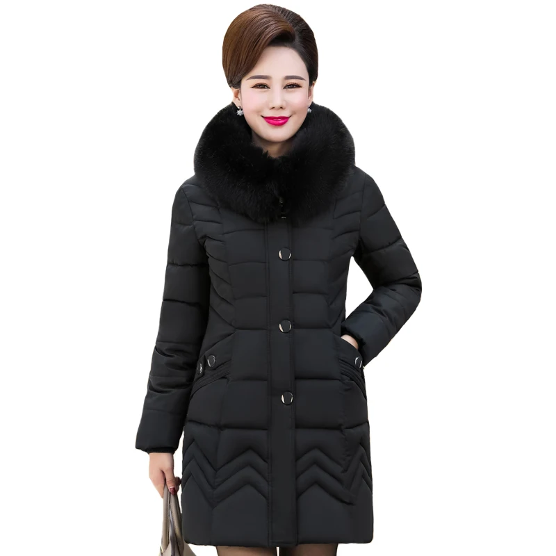 Product Name: Moda zima w średnim wieku kobiety kurtka Plus rozmiar gruby ciepły z kapturem dół bawełny długi płaszcz wysokiej jakości futro kołnierz kobiet parki
