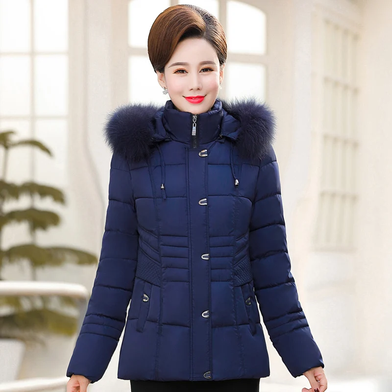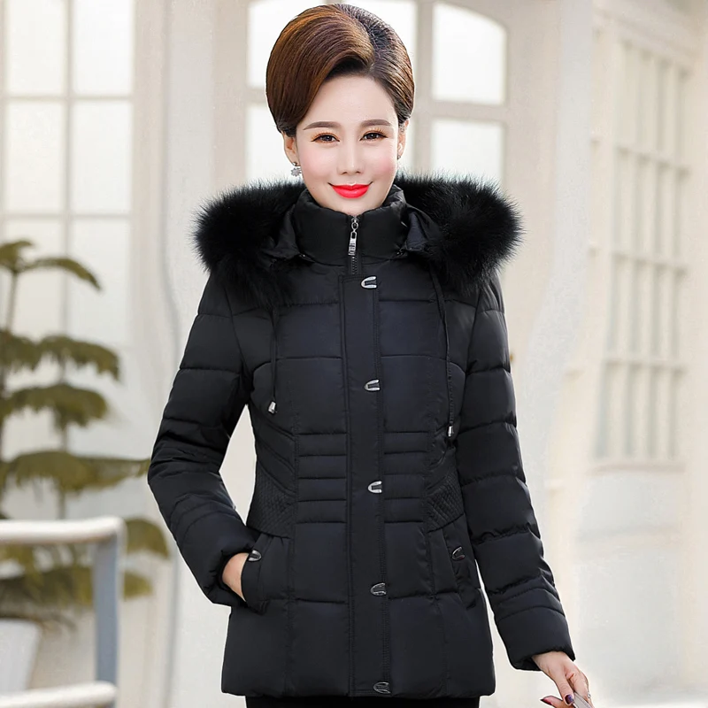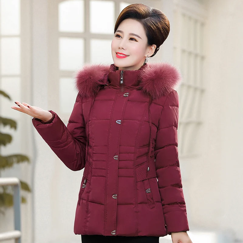 Product Name: Plus rozmiar 6XL kobiet w średnim wieku kurtka zimowa futro z kapturem kołnierz wysokiej jakości ciepłe zagęścić damski płaszcz panie krótkie parki