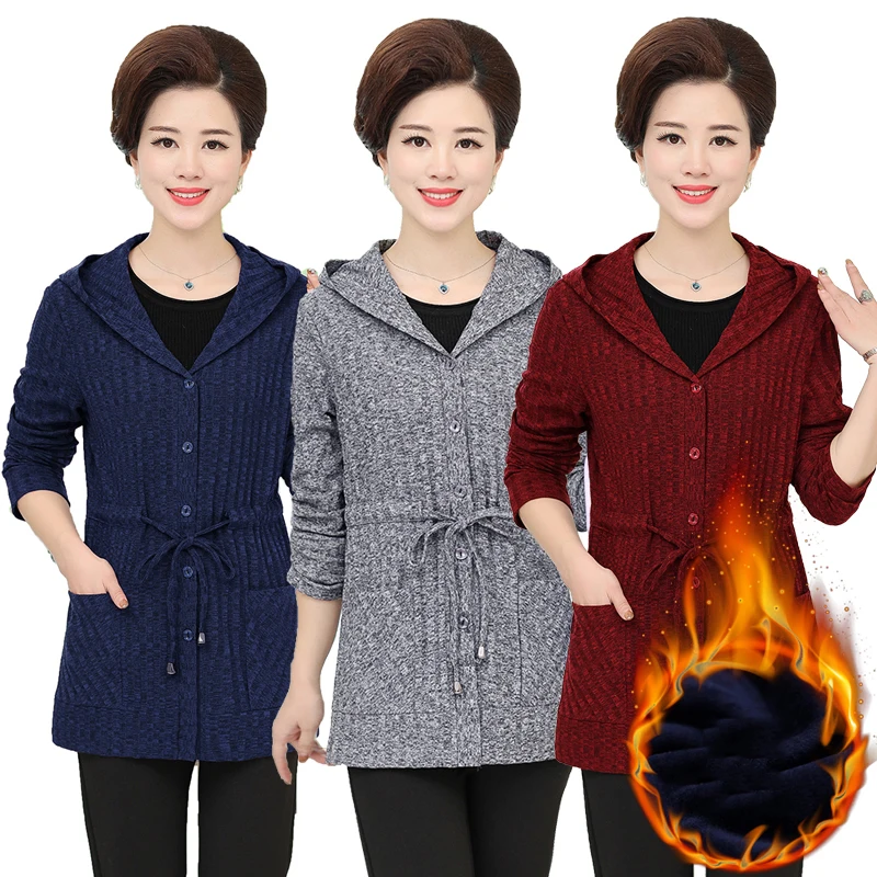 Product Name: Polar ciepły sweter dziergany sweter 2019 jesień zima w średnim wieku matka ubrania z dzianiny warstwa wierzchnia kobiety sweter z długim rękawem